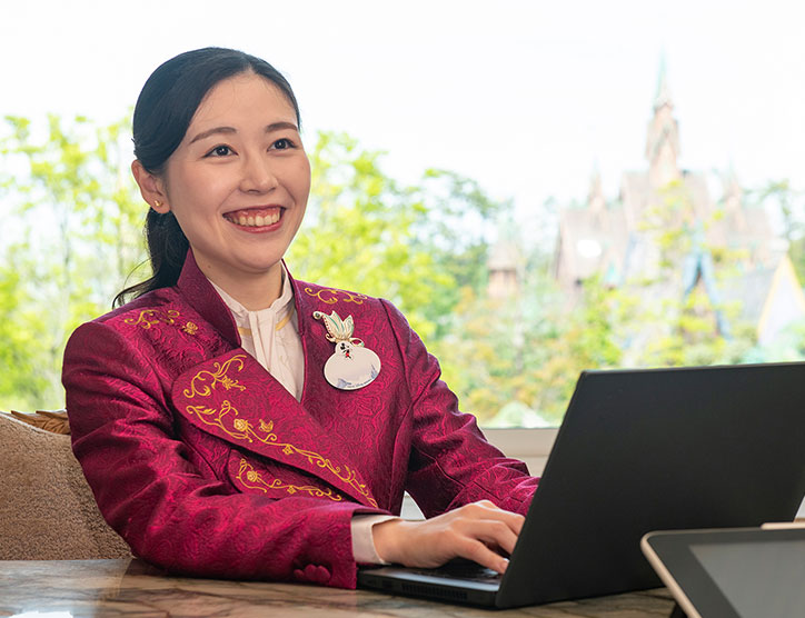 また、海外のディズニーホテルのサービスやゲストニーズを学びたいと思い、アウラニ・ディズニー・リゾート&スパ コオリナ・ハワイでの海外研修にも挑戦しました。文化や環境の違いを体感できただけでなく、歓迎の気持ちを最大限に表現し、目の前のゲストに寄り添うことが何よりも大切だということを改めて実感することができたので、海外からのゲストをお迎えする際には特に意識しています。