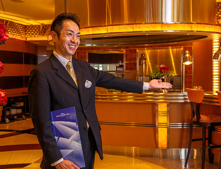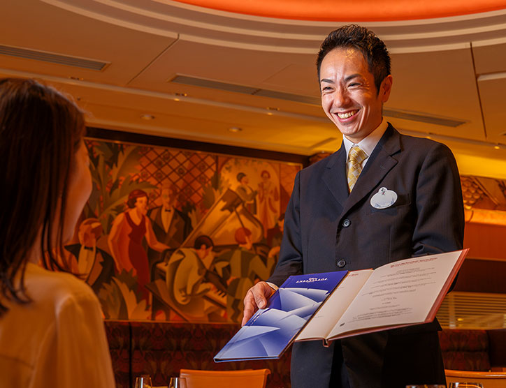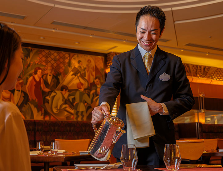 現在、私はディズニーアンバサダーホテルのエンパイア・グリルに勤務しています。エンパイア・グリルは、ご家族はもちろん、友人や恋人など幅広いニーズの方にご利用いただいているレストランです。それぞれのゲストに合わせたサービスを考えることはもちろん、店舗のオペレーションが円滑に進むようにキャストのサポートを行うことも私の重要な仕事です。限られた時間の中でも、ゲストの心に残るひとときになるよう努めています。