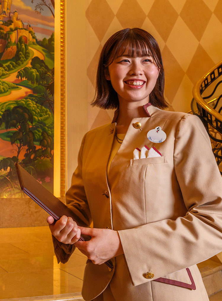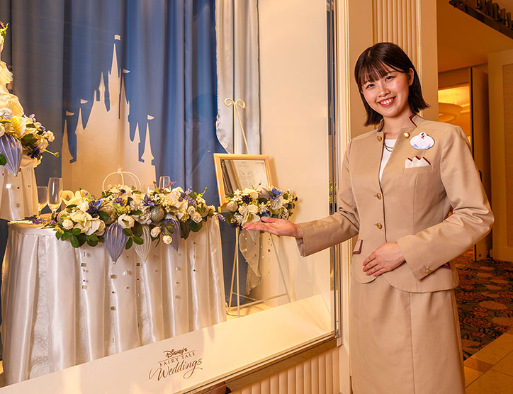 ディズニーアンバサダーホテルでの結婚式をご検討されている新郎新婦に魅力をお伝えしたり、料理・進行・演出などをお二人に寄り添ってお打ち合わせしたりしています。時には悩まれているお二人の相談相手となり、背中をそっと押すことで、人生で一度の大切な日を笑顔で迎えていただけるよう最善を尽くしています。