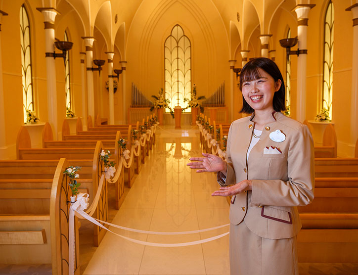 そんな時、先輩や上司からアドバイスを受け、お二人の背景や言葉の裏にある想いに目を向けることの大切さを学びました。そこから、同じ背景を持つ新郎新婦はいないからこそ、一組一組と丁寧に向き合う姿勢を大切にするようになり、今では少しずつ自信を持って接客できるようになっています。さまざまな新郎新婦と関わる中で得る多くの学びが、自分自身の成長にもつながっていると日々感じています。