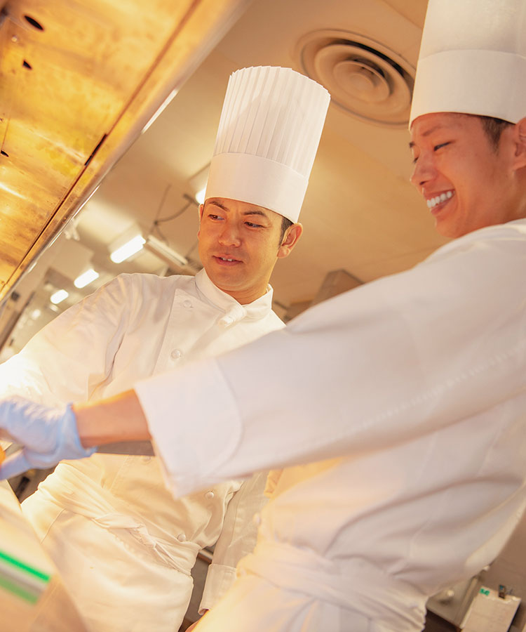 私は新卒で入社したため、他のホテルやレストランを知りません。料理人としての経験不足を感じながらも日々の業務に必死に取り組んできましたが、そんな中でフランス研修という大きなチャンスをいただきました。シェフという立場で研修を受けることは社内でも初の試みということもあって、正直、半年間も職場に穴を空けてしまうことに不安と申し訳なさを抱いていました。しかし、上司や部下が温かく背中を押してくれたことでその不安がかき消され、前向きになることができました。